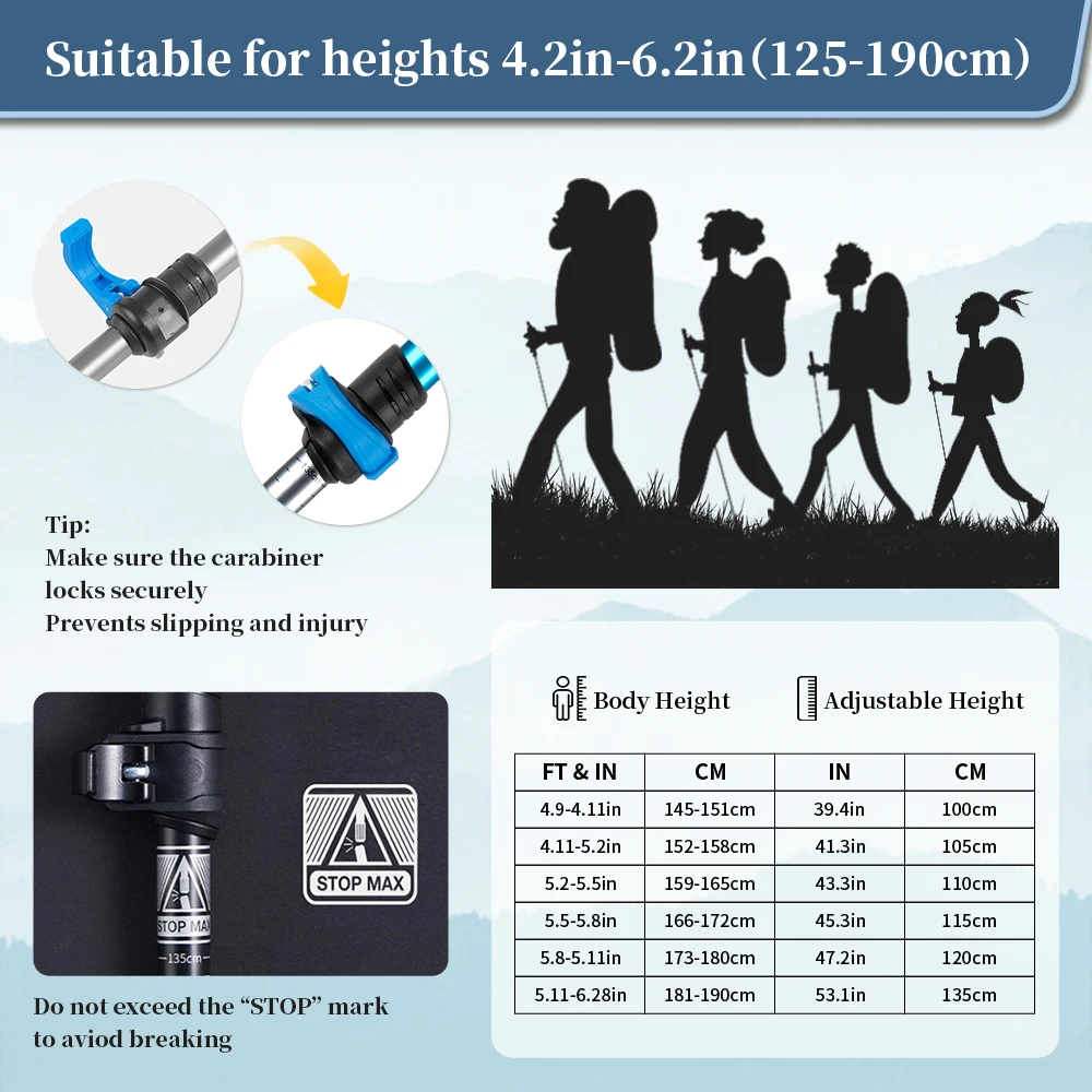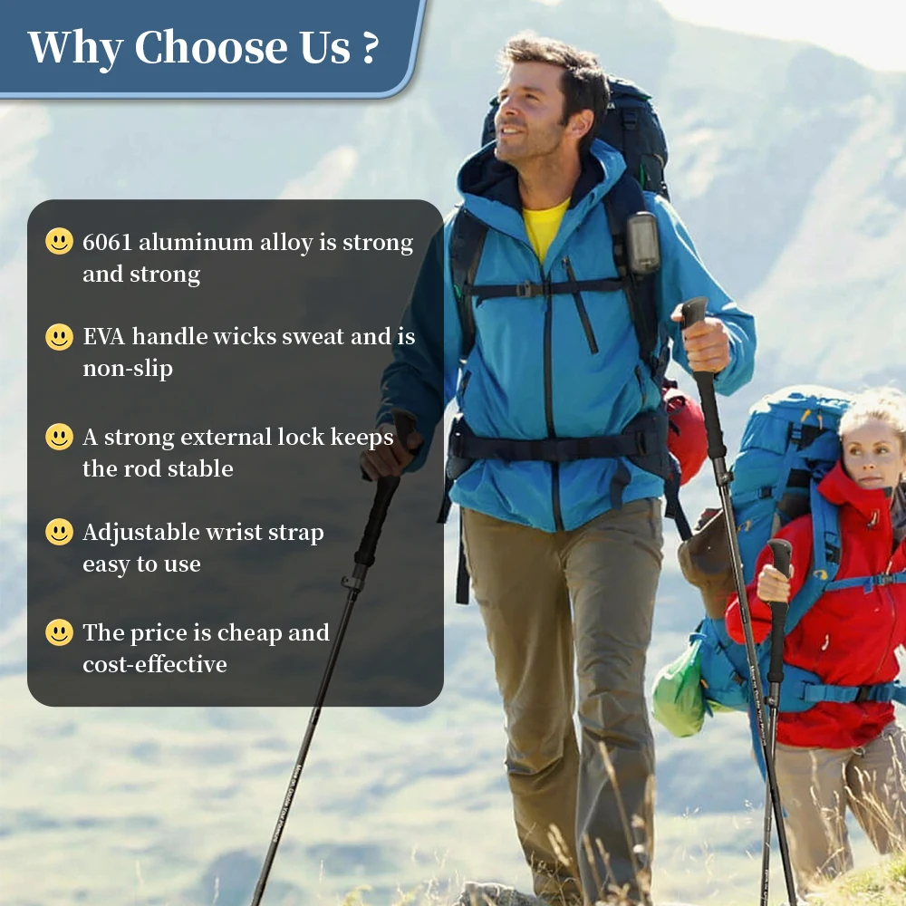 Welcome to Camp World Wild, where every adventure is supported by our Aluminum Hiking Poles, designed for hiking, mountaineering, skiing, and travel. Constructed from high-quality aluminum, these poles combine lightweight portability with exceptional strength, giving you reliable support on any terrain. The three-section design allows for easy adjustment and compact storage, making them ideal for backpacking, trekking, and on-the-go adventures. Ergonomic handles provide a comfortable grip, reducing hand fatigue during long hikes, while the wrist straps offer additional security and control. Perfect for climbing steep trails, navigating uneven paths, or supporting your balance on snowy slopes, these poles enhance stability and safety. Their durable construction ensures long-lasting performance even under rugged conditions, while lightweight design keeps them easy to carry. Adjustable lengths allow you to customize them to your height and activity type, making them versatile for different outdoor sports. Foldable and travel-friendly, they fit neatly into your backpack or luggage for convenient transport. Whether you are exploring mountains, forests, or winter trails, these poles provide dependable support every step of the way. Ideal for both beginners and experienced adventurers, they combine comfort, durability, and functionality. Elevate your outdoor experience with the Aluminum Hiking Poles from Camp World Wild, the perfect companion for every journey.